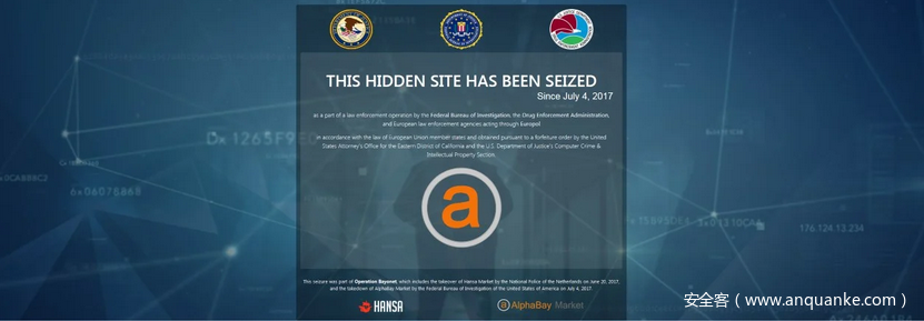 在2017年7月的联合执法行动后,AlphaBay暗网市场被打击。2017年7月13日,执法部门在美国、加拿大和泰国展开了突击行动,该行动是FBI和DEA领导的“刺刀行动”的一部分。该暗网市场的服务器也被加拿大和荷兰的执法部门查封,同时价值数百万美元的加密货币也被冻结和查封。