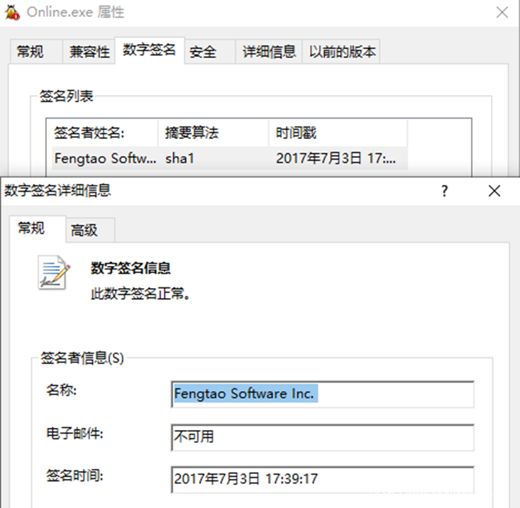 其中Online.exe是DVDFab Player 3的错误上报程序BugReport.exe,并且具备正常签名。