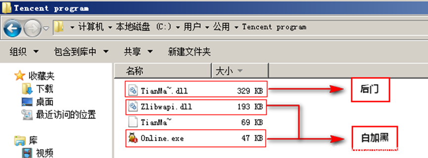 随后,恶意软件启动之后会下载释放一组白加黑的后门模块。