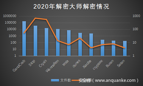 在2020年6月中,360解密大师再度新增了对Pojie(修改后缀为52pojie、itunes)勒索病毒的解密支持。从其整体解密统计数据看,当月解密量最大的是GandCrab,而使用解密大师解密文件的用户数量最高的,则仍是Stop家族的中招设备。