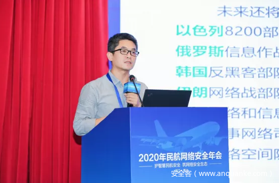 中国民航大学副校长吕宗平,中央网信办网络安全协调局应急检查和通报处负责人范兵,民航局人教司巡视员、副司长陈朝霞,民航华东地区管理局党委副书记孙莹等领导出席年会。360政企安全集团总监、360未来安全研究院资深安全专家闫斐带来了《数字孪生时代下的网络攻防实战演习》的主题演讲。
