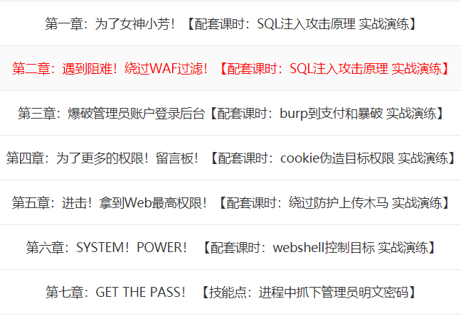 课程是和靶场相对应的,听完课去做靶场,熟悉相关技能的原理,熟悉相关技能的操作。靶场新老手都适用!
