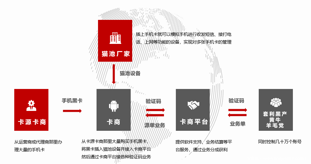 风控作为抵御黑产攻防战的前线堡垒,时刻在承受“轰炸式洗礼”。在多年的斗争当中,黑产在利益驱使下似不知疲倦的发起一波又一波的冲锋,作战方式也从近乎野蛮兽人部落的人力消耗,变成了具有成熟完整分工和攻击模式。上下游明确的“军团化”作战,从负责生产和提供各类黑灰产资源的卡商和工具开发者等上游,到接码平台、账号代售平台、刷手等下游,协作程度、自动化程度、攻击频率、隐蔽性均在提升。