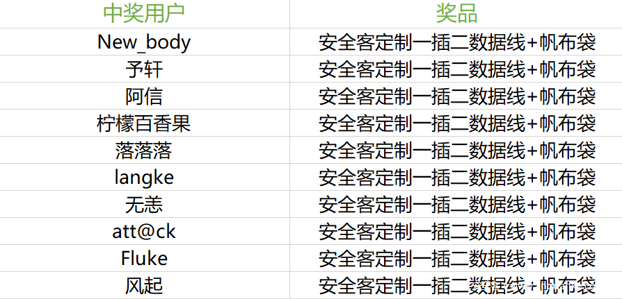 请以上10位中奖用户QQ添加安全客用户5群:1015601496,私聊管理员@安全客发送礼物寄送地址哦~(请附上主页截图核对身份)