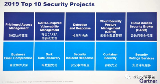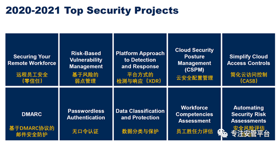 会上,正式发布了2020年度的十大安全项目,发布人还是Brian Reed。这十大项目介绍Gartner中国的官微做了介绍,但本文认为有几处翻译不妥。
