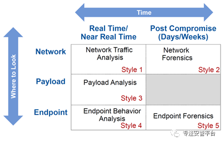 通过上面的分析,大家都会产生一个疑问:XDR跟SIEM/SOAR是什么关系?注意,这里我们将SIEM/SOAR打包到一起来跟XDR进行对比,是为了避免阐释SIEM和SOAR的关系,此刻这个问题先放一边。Gartner表示,尽管XDR与SIEM/SOAR在功能上存在相似性(譬如都有异构数据采集、范化、关联,而且通常都会采用大数据分析技术,还可能都有剧本编排与自动化响应技术),但在目标定位和技术路线上存在差异。在目标定位上,XDR仅关注威胁检测与响应,而SIEM除了关注威胁检测与响应,还要覆盖日志存储及合规审计等其它场景。在技术路线上,XDR强调对单一厂商的安全产品集成,并且在出厂前就将这些产品打包在一起,提供了更易于部署和使用的操作过程。相比之下,SIEM/SOAR必须具备跨厂商产品集成能力。正是因为在设计上的这些简化,XDR规避了SIEM/SOAR当前存在的几个大坑(笔者注:譬如架构开放性和扩展性问题、产品集成问题、部署和实施复杂性问题、知识管理问题),使得XDR的部署和实施复杂度相较于SIEM/SOAR要简化不少。此外,如果是针对云计算环境,云中的端点安全和工作负载安全能力,以及平台架构作为成为了衡量云安全检测与响应的关键。此时,XDR厂商比大部分SIEM/SOAR厂商更占优势,因为先进的XDR通常都基于云原生架构来实现。并且,XDR厂商在云端EDR及CWPP方面更具优势。简言之,就是在相同条件下,以威胁检测为目标,XDR出效果比SIEM/SOAR更快。当然,Gartner认为XDR也存在一些问题。由于XDR集成的都是自家的产品,虽然简化了不少,但却容易将用户锁定在单一厂商之下。XDR厂商的“全家桶”模式难以确保除EDR之外的检测能力都是同类最佳,且如果各种单点产品都基于同一个厂商,未来的维护、升级都存在风险。首先,XDR还有不少技术短板需要补齐。在多源安全数据采集分析,尤其是关联分析方面,XDR厂商普遍落后于SIEM厂商。在响应方面,SOAR的编排自动化技术也是XDR需要补足的。其次,也是最关键的,XDR是作为一个集成化的产品和解决方案提供给客户的,用于解决其一揽子的威胁检测与响应的问题。而新一代的SIEM/SOAR则越来越强调给用户赋能,是以能力建设的形式输出给用户的。对于大型用户而言,网络中必定存在不同厂商的安全防护设施,也必定需要一个统一的SOC。因此,XDR无法取代SIEM/SOAR。但对于中型客户而言,XDR可能会在SOC中占据更主要的位置。还有一部分客户,Gartner建议他们既不要考虑XDR,也不要考虑SIEM/SOAR,而是优先考虑MSS。XDR虽然比SIEM/SOAR简化了不少,但还是需要运营的。必须指出,Gartner对于XDR还在不断厘清的过程中,该技术(所代表的细分市场)并不稳定,也许在一段时间后会消失。因为XDR与SIEM/SOAR存在一定的重叠性,并且更多是因为SIEM/SOAR技术的发展过程中存在的问题而引伸出来的一个“过渡性”解决方案,也许随着SIEM/SOAR的成熟而消失,抑或找到一个属于自己的缝隙市场。5.3.7 从检测技术的划分看XDR的发展趋势