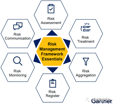 安全风险评估(Security Risk Assessment)是Gartner十分看重的一项工作,写过大量的报告和指南。安全风险评估这个概念已经有了二十年的历史了,十分古老,意义不言自明,是安全领域的一个理论基石,但更多是停留在理念、标准、规范层面,不论是ISO27005,还是NIST SP800-30都有专门的论述。很早以前,人们(譬如笔者)就在试图将这个工作形式化,借助系统来自动运行,至今仍然在为之努力,目前主要是体现在GRC类产品和平台之中。近些年来,由于人们更多将目光投射到面向对抗的安全领域,对于安全风险评估有所淡忘。事实上,Gartner一直在关注这个领域,并且是作为安全的五大分支之一在持续跟踪研究。回到安全风评估技术本身,它属于风险管理框架的组成要素之一,如下是Gartner的风险管理框架:如果我们看NIST SP800-30,或者ISO27000系列,对于风险管理和风险评估的阐释也都差不多,这里不再赘述。Gartner建议,为了降低风险评估工作的操作复杂度,提升这项工作的成效(量化效果),必须引入自动化技术。Gartner表示,安全风险评估自动化的目标是将定义明确且可重复的风险评估过程的各个要素整合起来,以识别、度量和处置IT风险。自动化风险评估的一个重要价值就在于采用一致和一贯的标准(譬如NISTCSF框架、ISO27001,或者风险计算模型和公式)来估算风险,使得风险度量的结果可比较,改进情况真正可度量。Gartner表示,向安全风险评估项目注入某种程度的自动化的目的是确保随着时间的推移,对评估结果保持一致性和信心。进一步分析安全风险评估自动化的技术手段。最典型的一类自动化分析手段就是利用日志分析技术,采集关键数据源的文本信息,基于预定义的风险模型进行计算和分析。但实际上,风险评估时仅仅采集与分析控制措施运行后产生的痕迹信息是远远不够的,还需要对控制措施及其过程进行测试验证,包括采用BAS、配置核查、漏洞扫描、资产测绘,也包括采用诸如SOAR、RPA技术手段将多个重复的测试过程串起来,还包括采取诸如ISACA推介的连续控制措施监测(CCM)方法论。6 候选安全项目