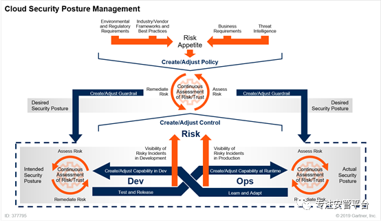 CSPM(Cloud Security Posture Management)在国内首先遇到的问题是如何翻译的问题。国内有的人将CSPM中的Posture翻译为“态势”,将CSPM称作云安全态势管理。笔者认为不妥,因为如此一来就跟我们国内最近几年提的安全态势感知混淆了。仔细研究CSPM,可以发现,这里的Posture并不是讲我们国人一般所理解的“态势”,而是指“保护云中数字资产的各种策略、流程和控制的整体安全强度的相对度量”(这句话出自Gartner的CSPM发明人Neil McDonald的报告《Innovation Insight for Cloud Security Posture Management》)。简单地说,CSPM中的P是指云安全配置的强度,这里的配置涵盖云安全策略、控制项、安全操作流程规范。因此,笔者从Gartner提出CSPM伊始就呼吁国内同行将CSPM翻译为“云安全配置管理”。一方面这个翻译更贴近CSPM的本质,另一方面也很好地与国内讲的态势感知区分开来。回到CSPM技术本身,Gartner在2019年才给出了一个CSPM的概念组成,如下图所示。Gartner认为CSPM是一个持续的过程,采用生命周期方法论给出了CSPM的概念组成,横跨开发和运行两个阶段,依照CARTA理念进行基于风险的动态配置管理。Gartner表示,几乎所有针对云的成功攻击都是由于客户误配置、管理失误和认为错误造成的,而CSPM直接针对这个问题给出解决方案。根据Gartner的定义,CSPM能够通过预防,检测,响应和预测构成的自适应安全架构来持续管理超越依据通用框架、合规要求及企业安全策略所能承受的云安全风险【笔者注:简单理解就是管控多余的风险。只要开展业务,任何配置都不能做到无风险,CSPM不是消灭配置风险,而是管控超出预期的配置风险】。CSPM核心能力是提供主被动发现和评估云服务配置(譬如网络和存储配置)和安全设置(譬如账号特权和加密设置)的风险及可信度。如果设置不合规或者配置超越了风险承受水平,CSPM能够自动进行配置调整和补救。有时候,我们可以将CSPM的评估功能(也被称作CSPA)归入弱点扫描类产品中去,跟漏扫、配置核查搁到一块。此外,CSPM除了能对云生产环境中的负载进行配置核查与修复,还能对开发环境中的负载进行配置核查与修复,从而实现DevOps全周期的防护。CSPM跟多个细分市场都有交集。云提供商现在大都在云原生安全能力中涵盖了CSPM功能。领先的CASB厂商也已经具备了较强的CSPM功能。同时,一些CWPP厂商也开始提供CSPM功能。此外,当前的云管理平台(CMP)通常都自带CSPM功能。5.5 简化云访问控制项目