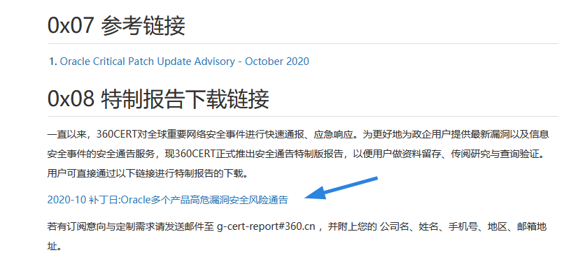 试运营期间,360CERT发布的安全报告的文末会专门提供其特制报告的下载链接。