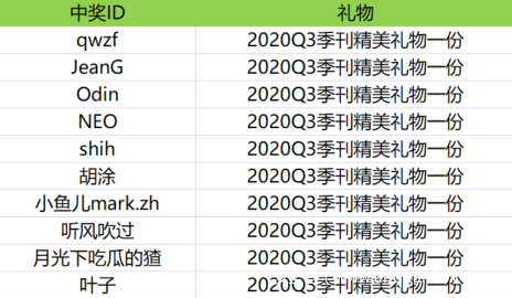 恭喜以下在公众号后台发送截图的小伙伴获得2020Q3季刊精美礼品一份,赶紧将收货地址发送到安全客微信公众号后台吧~