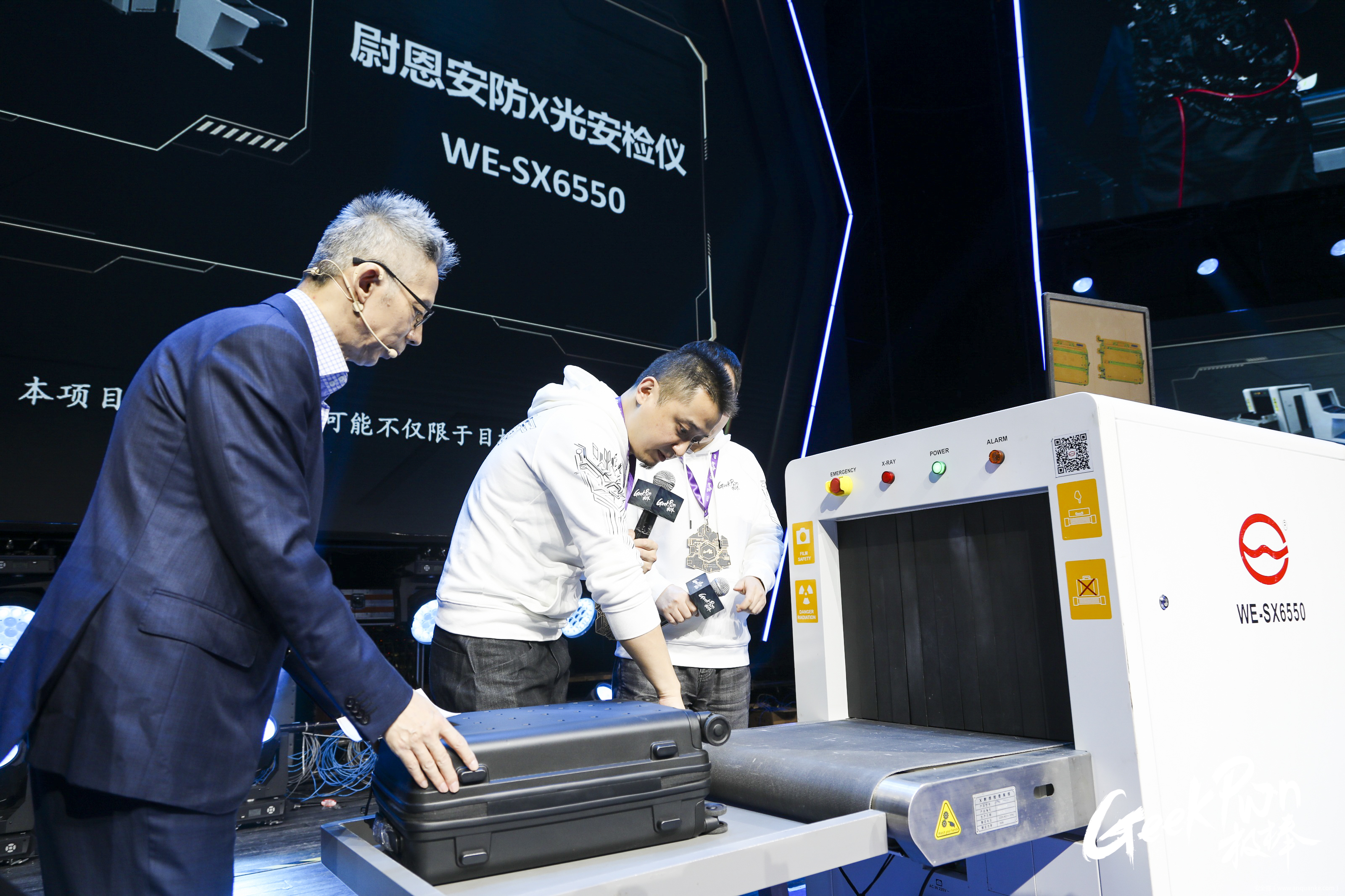 挑战选手浮士德利用X光安检仪的漏洞,用自制设备改装了行李箱,将瑞士军刀、打火机等危险物品 “隐藏”在行李箱中,顺利通过了全方位、无死角的安检仪的监测。挑战成功后,这位低调的大佬打算离场去赶飞机。蒋昌建将他截住,怀疑的问道:“这些刀是你随身带上飞机、带来会场的吗?”得到了选手肯定的回答。现场的小安闻言想献上自己的膝盖!
