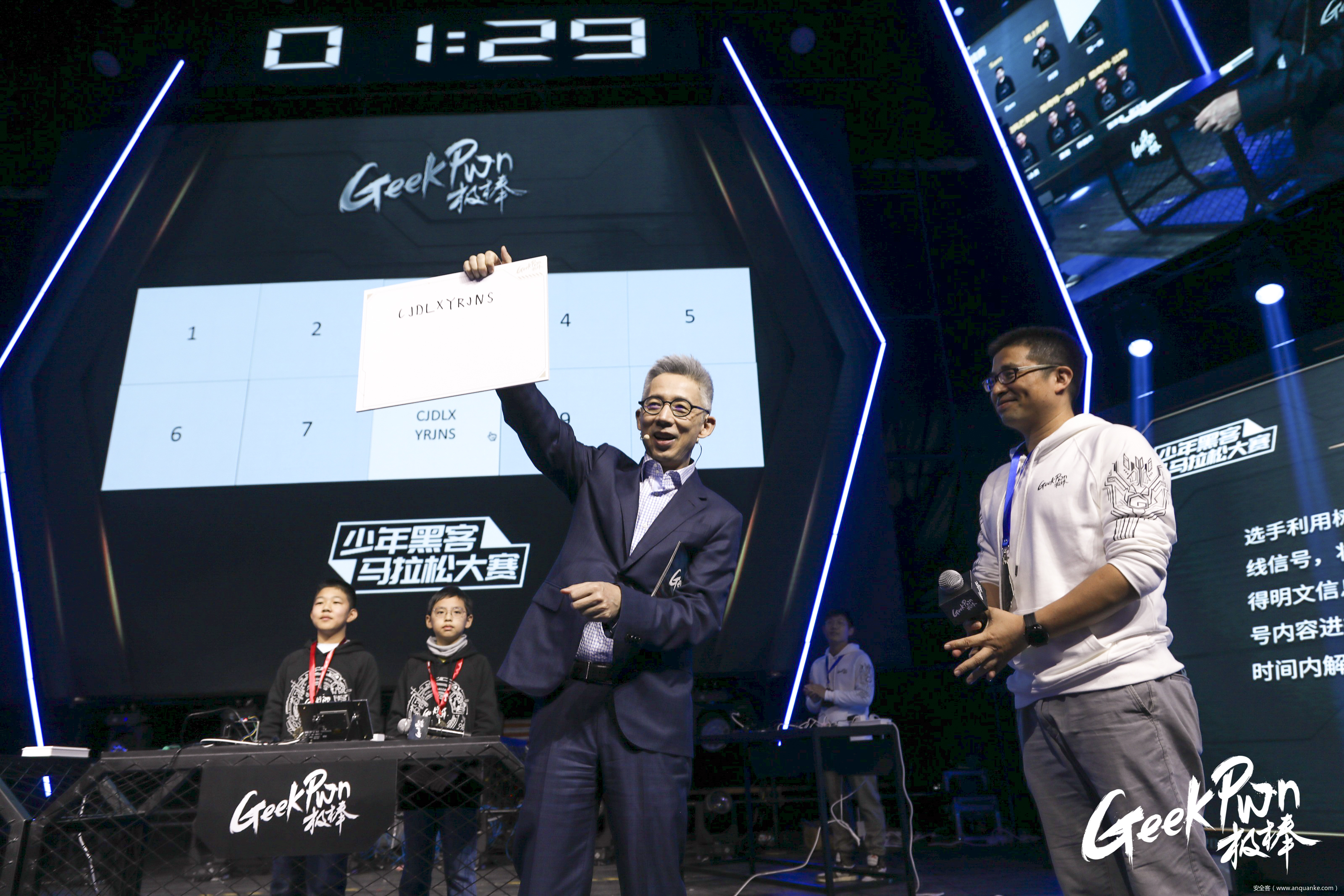 新基建安全大赛现场,来自安恒海特实验室的三位选手信心、古起仁、钟文洁正在利用未知安全漏洞,对LTE基站进行渗透攻击、篡改网站数据。最终三位选手利用漏洞攻击,成功地攻击LTE基站,劫持了比赛现场的手机移动数据网络流量,更改该观众的网页信息,导致浏览记录被监听和劫持。 破解了主持人蒋昌建设置的“通关密码”19930829之后,选手将手写密码展示到现场观众面前,收获了观众的热烈掌声。蒋昌建激动说道,1993年8月29日是他人生中一个重要的日子,这是他参加中国中央电视台和新加坡广播局举办的首届国际大专辩论会,帮助复旦夺得冠军,获得决赛“全场最佳辩论员”称号的那天。
