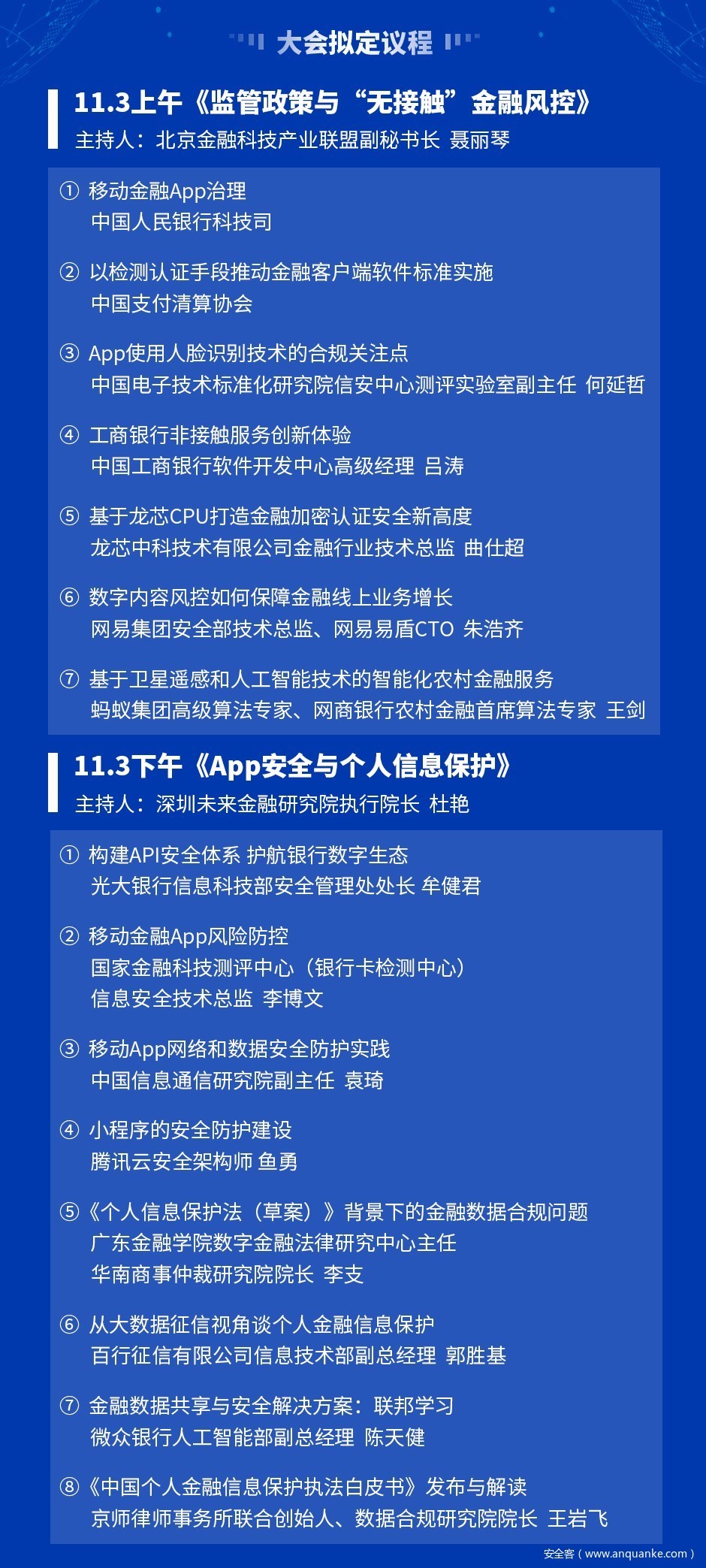 看监管。在过去的4期大会中,组委会都邀请了监管层相关领导,解析金融科技监管政策。今年,组委会仍然要求了人民银行科技司、中国支付清算协会等监管机构,分享金融数据安全相关话题。为金融科技企业发展,指明合规之路。