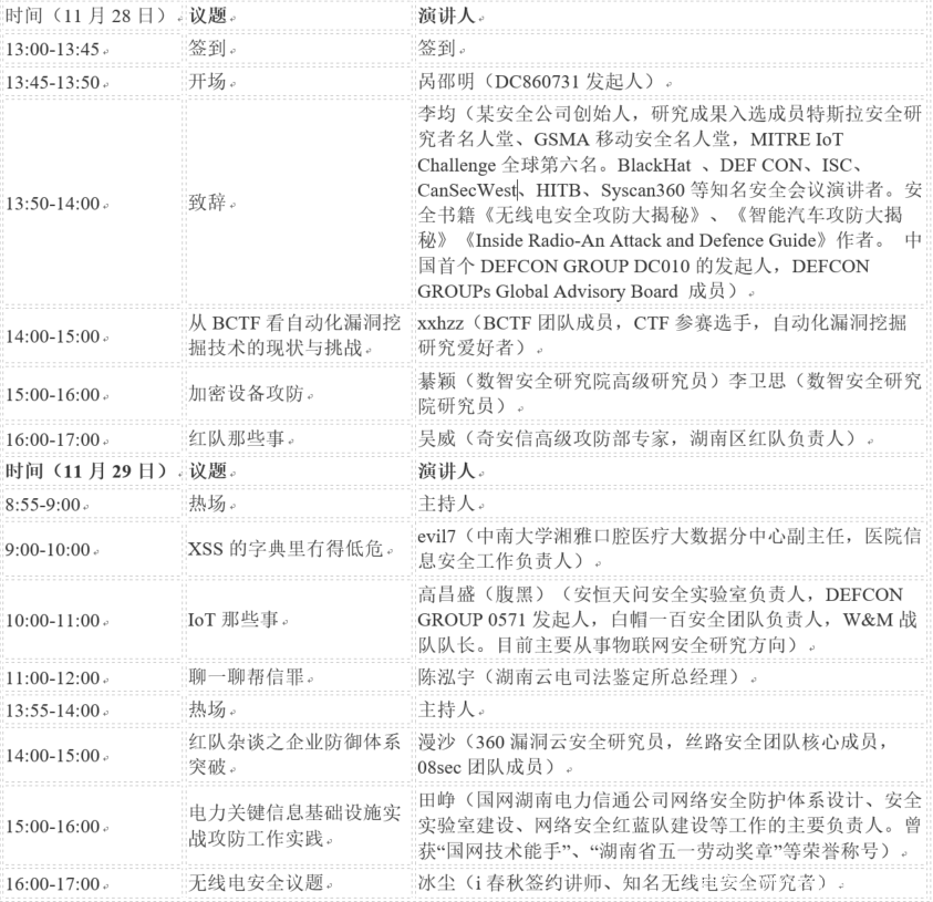Defcon Group 860731将于2020年11月28号-11月29号在长沙举办,延续Defcon的传统,将有干货满满的议题演讲和技术展示,为了让极客精神继续传播,让志同道合者更好的交流和沟通,我们广泛征集议题,欢迎大家投稿!