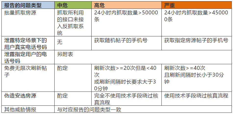 若实际是通过房源找到userid、用户名、邮箱等,并使用其他接口查询到用户电话号码(非房源帖子中的电话号码)的,不单独认定为本漏洞,改认定为提交了一个“泄露指定用户的电话号码“类漏洞;