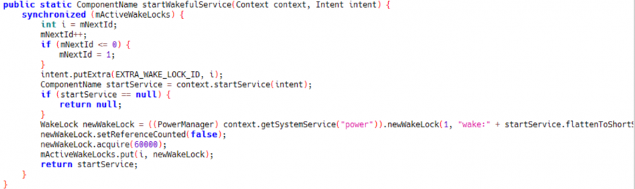 2)设置电源锁,当屏幕处于关闭状态时,保障恶意程序的监听服务处于监听状态,确保对用户处于一直监听状态。
