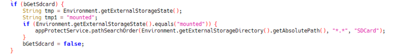 6)解析远控文件当中的远控指令,当指令是get_sdcard,将get_sdcard的值设置为true,当get_sdcard的值为true时,获取用户sd卡目录。