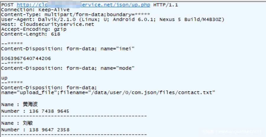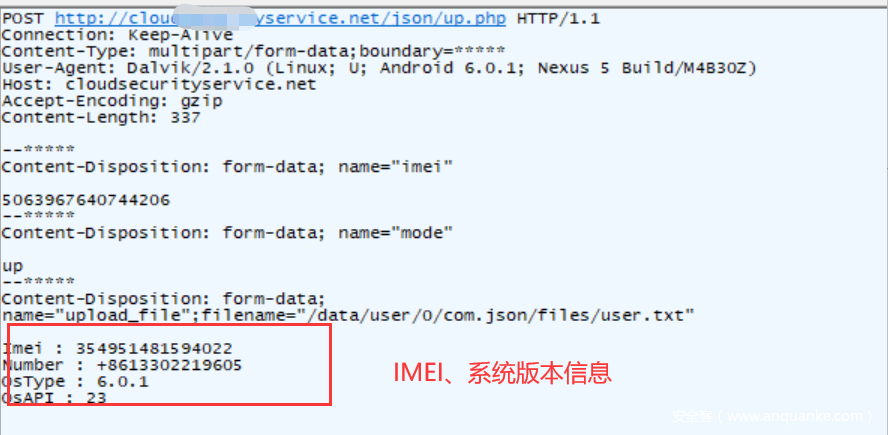2)上传用户隐私信息,上传地址是http://cloudsec****service.net/json/up.php。