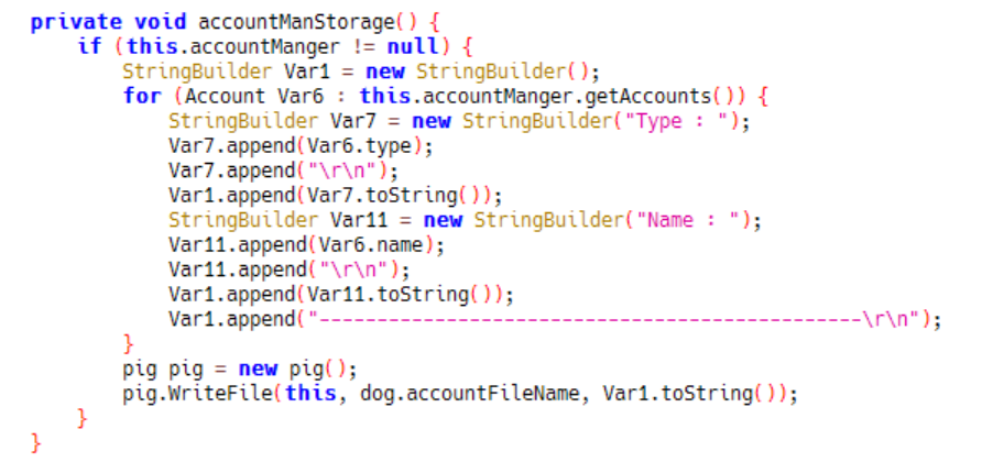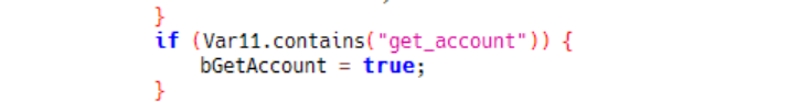 7)解析远控文件当中的远控指令,当指令是get_account,将get_account的值设置为true,当get_account的值为true时,获取用户账户信息。