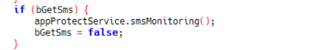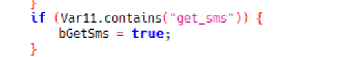 4)解析远控文件当中的远控指令,当指令是bGetSms,将bGetSms的值设置为true,当bGetSms的值为true时,获取用户短信。
