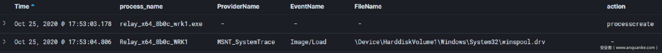 模块加载事件还突出显示了C3 Relay每次试图将作业添加到打印队列中时的情况。最值得注意的是,我们可以看到每次执行打印作业时,prnfldr.dll和 PrintWorkflowProxy.dll都会被重复加载和卸载。