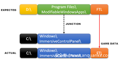那么,假设我能够针对ModifiableWindowsApps目录创建原始的连接点,也许可以按照下述步骤将安装程序劫持到任意目录(即:C:\Windows\ImmersiveControlPanel),从而绕过访问限制。