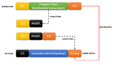 如果我能够获得对ModifiableWindowsApps目录的写访问权限,那么我就可以尝试将游戏安装重定向到系统上的任意目录,包括普通用户无法访问的目录,因为安装进程是以高特权用户身份运行的。
