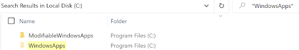 因此,我执行了一个附加步骤,在主驱动器上搜索了“*WindowsApps*”关键词,得到以下结果: