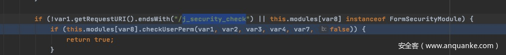 具体的权限检查调用逻辑如下,首先在ChainedSecurityModule.checkAccess中会检测路径是否包含登录接口(j_security_check),
