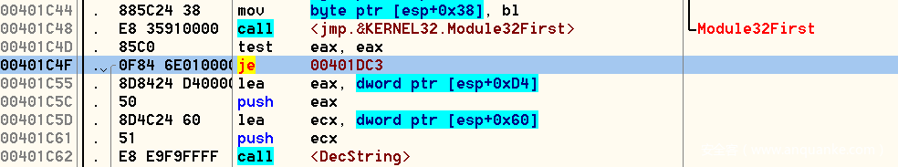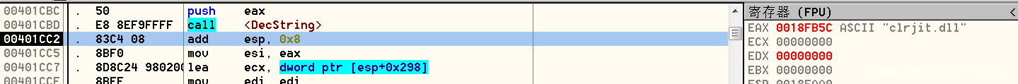 进入这个call里面观看,这个函数就是取到了之前mov的数组进行解密了