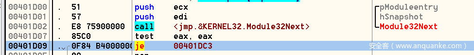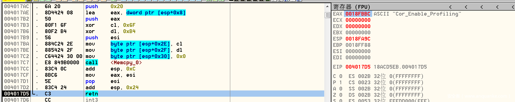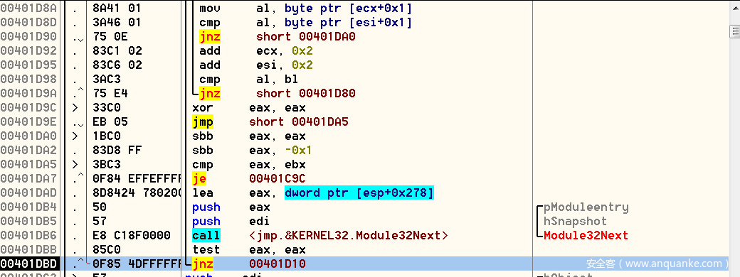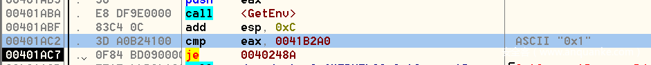 下面是获取环境变量Cor_Enable_Profiling的值如果和0x41B2A0做比较如果不等于则会继续走下面,等于则跳转走另一分支,另一分支就是直接结束程序。所以我们走遍历模块的。