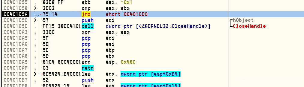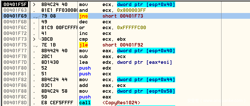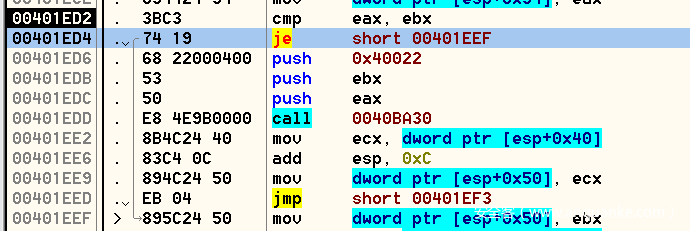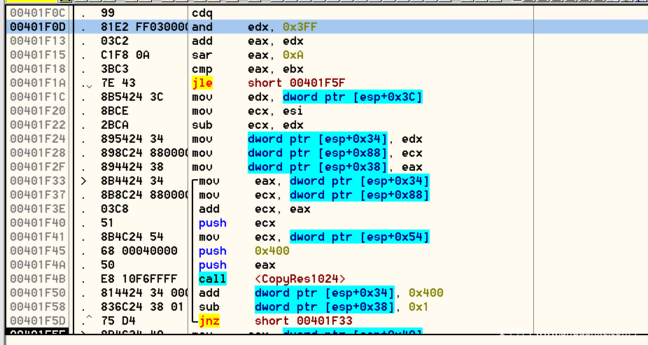 很明显下面是个if else 就是下面这样的汇编格式,到这里内存空间就申请完了,下面就是拷贝资源了吧