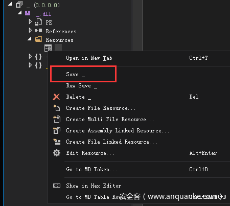 既然这样这个dll就没啥必要看了大概功能就是释放执行里面的PE还是个Loader,用dnspy把资源保存出来