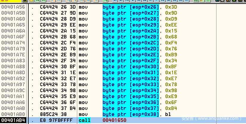 下面是这种操作mov了一大堆的指令然后再调用了一个call
