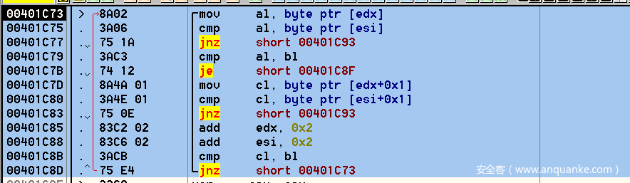 这一段汇编就是strcmp,不熟悉的可以多看看