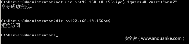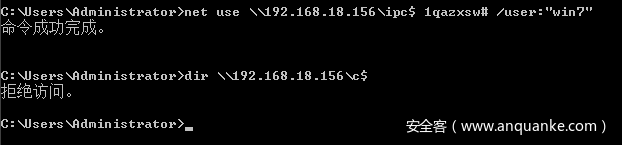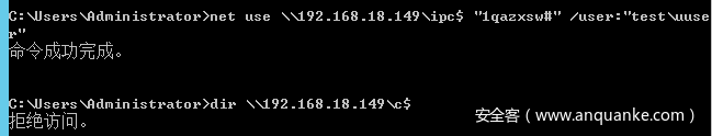 由于remote UAC默认开启的,计算机的任何非 500本地管理员帐户, 用户在远程计算机上没有特权提升能力,并且用户无法执行管理任务。使用非500用户来远程访问皆为:拒绝访问