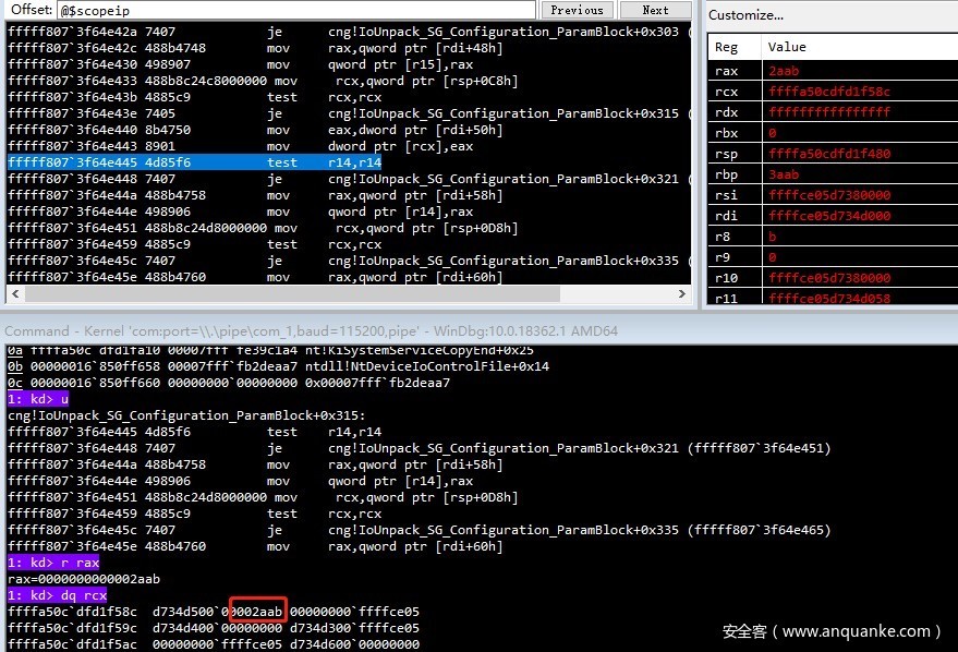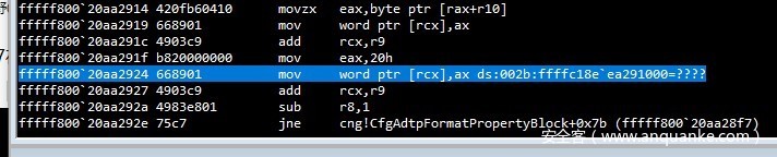 fffff802`3daa2924 668901 mov word ptr [rcx],ax
