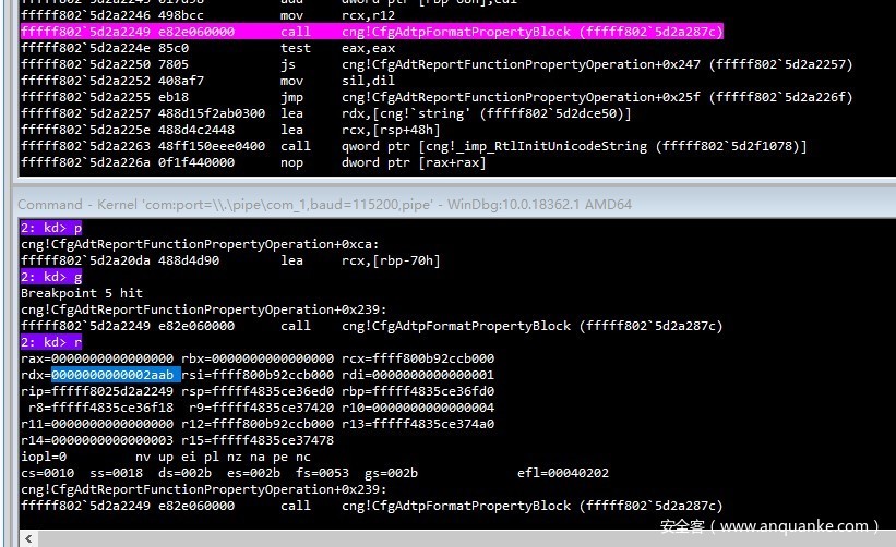 在多次调试发现,后续使用的2AAB正是在调用CfgAdtReportFunctionPropertyOperation前,此时的rsp+3f+38h,正是传入的第六参数(*block1+50h),后续函数会将此处的值取word,传入漏洞函数。