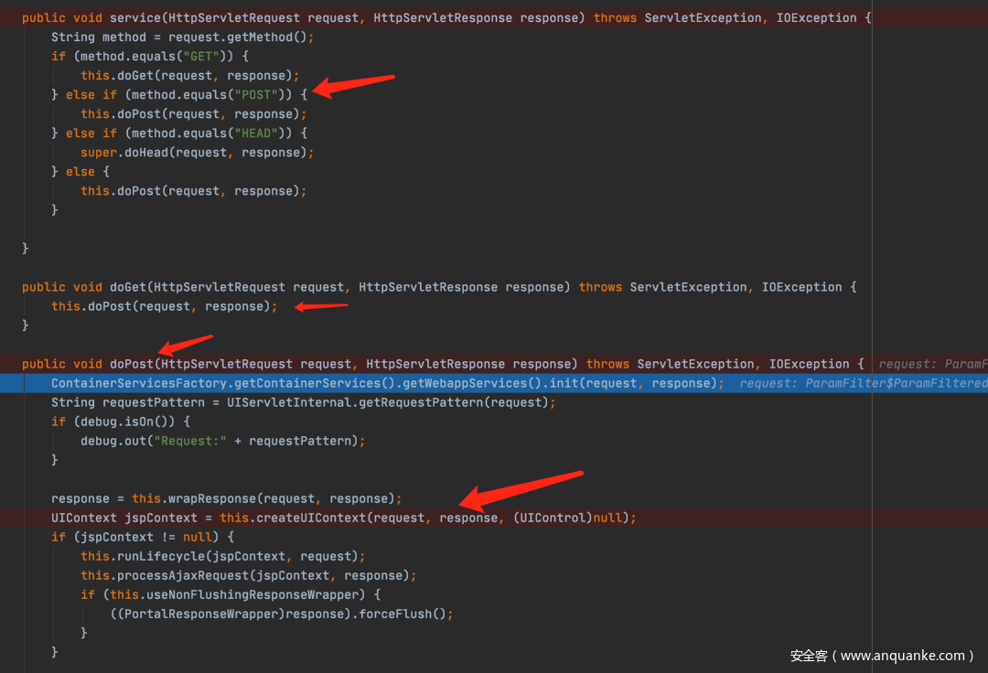 最终不管哪种请求都会来到doPost,并在这里调用createUIContext