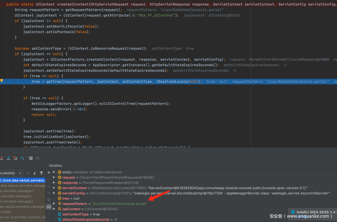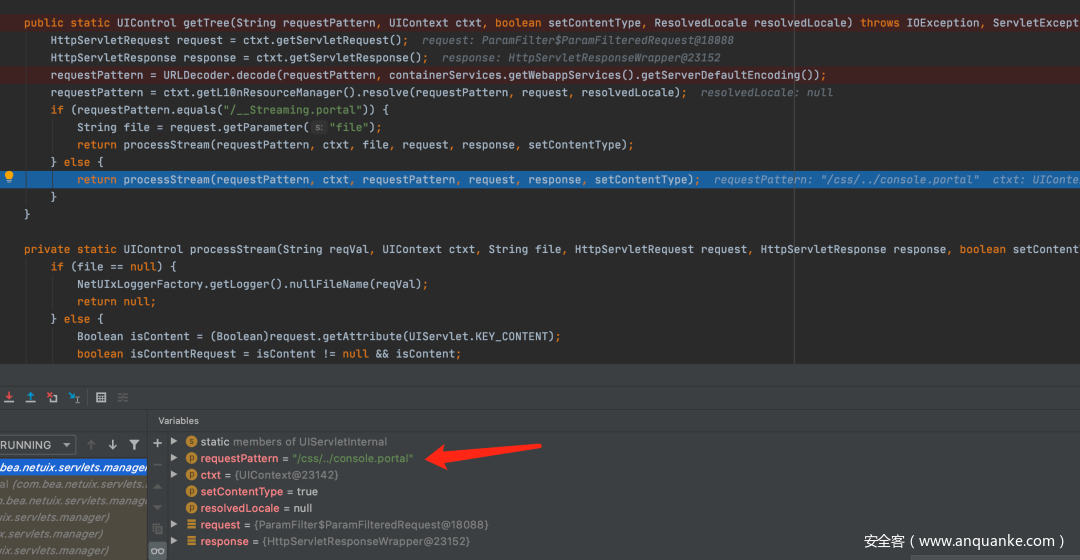 随后进入getTree又进行了一次解码,此时requestPattern就变成/css/../console.portal