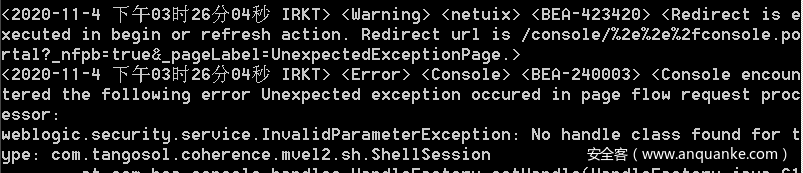 通过com.tangosol.coherence.mvel2.sh.ShellSession,但此利用方法只能在Weblogic 12.2.1及以上版本利用,因为10.3.6并不存在com.tangosol.coherence.mvel2.sh.ShellSession类。