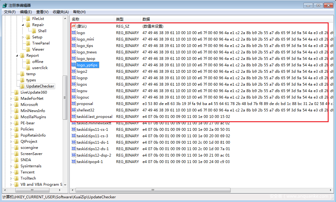 其中命令行参数“-dlldata= logo_yptips”会对指定的模块进行logo_yptip加载,该模块都被加密后写入Gif数据,并被存放在注册表中,执行的时候创建远程线程执行此段shellcode,最终由shellcode加载起YpTips.dll并调用导出函数e开始执行弹窗相关操作: