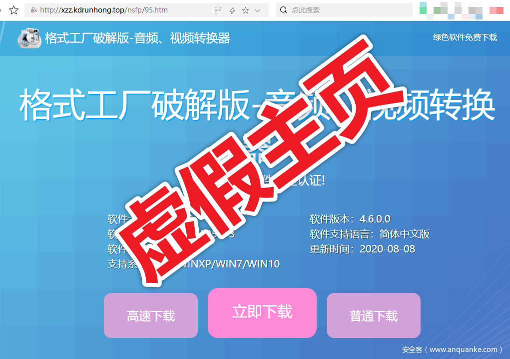 而虚假主页中所下载的软件,则是带有广告程序的恶意软件。