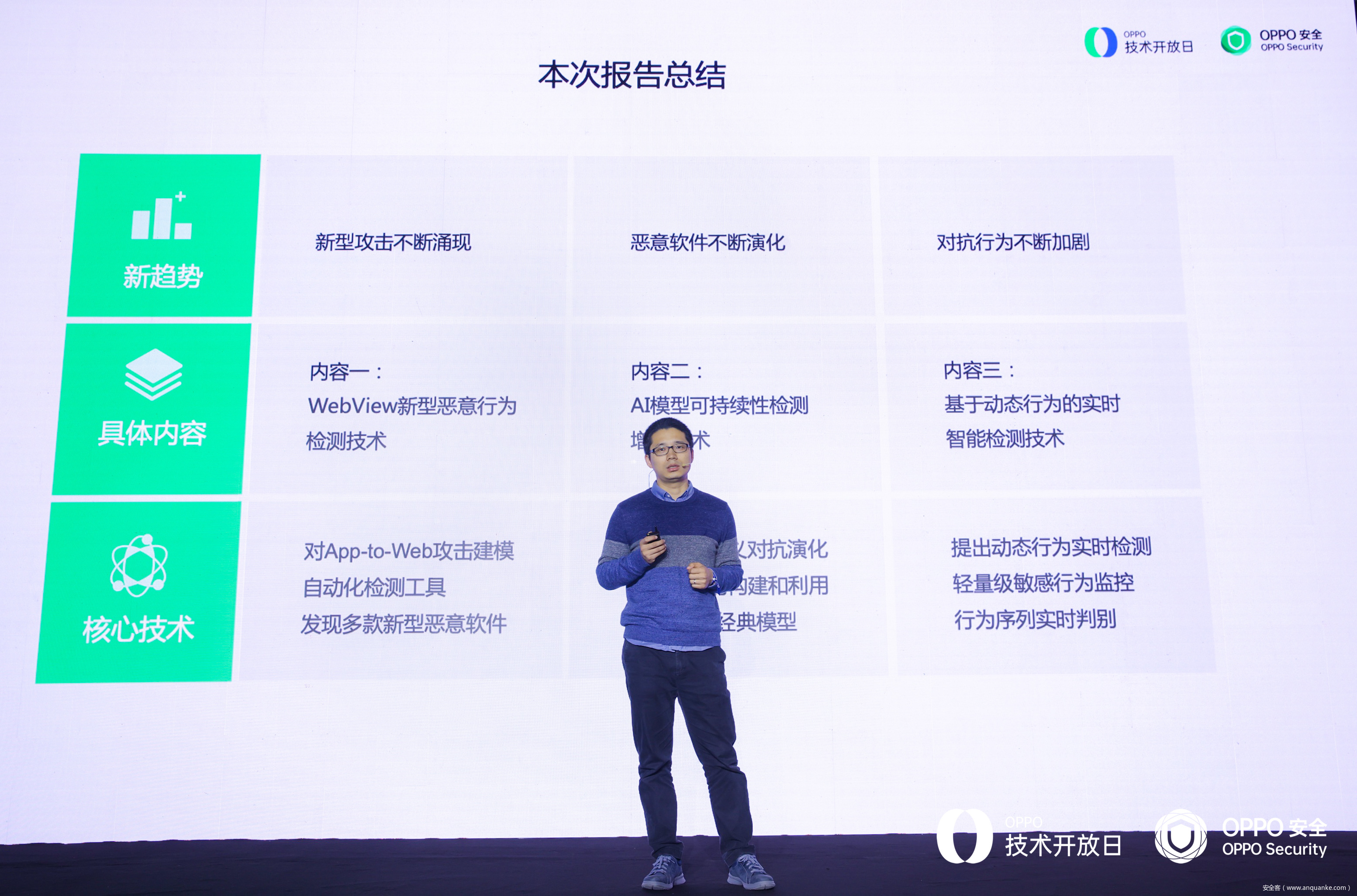 而面向移动应用安全,OPPO与参会的安全从业者交流了Android平台上的应用安全问题、安全技术发展以及OPPO在移动应用安全领域的行动和积累。
