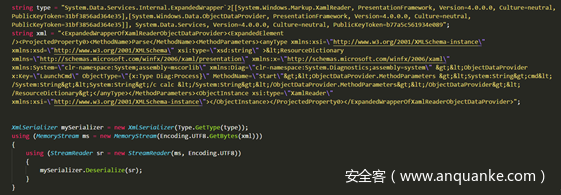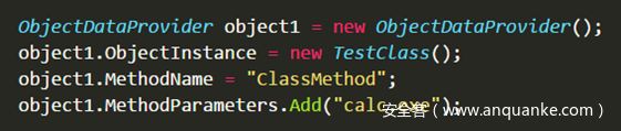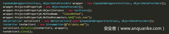我们还是选择ObjectDataProvider类方便调用任意被引用类中的方法,具体有关此类的用法可以看一下https://ivan1ee.gitbook.io/-netdeserialize/fan-xu-lie-hua-lou-dong-xi-lie/1xmlserializer-fan-xu-lie-hua-lou-dong#0x01-xmlserializer-xu-lie-hua,