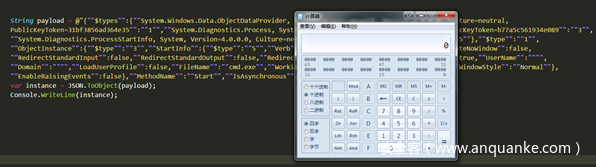 通过下面的Demo , JSON.ToObject(payload)反序列化成功弹出计算器。