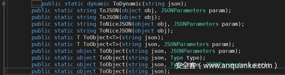 FastJson定义的JSON类定义了多个ToObject重载方法,对于反序列化漏洞无需关心重载的方法参数是一个还是多个,它们都可以触发漏洞