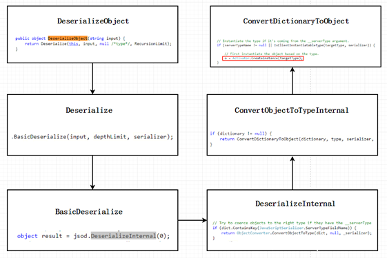 如果创建了,并且反序列化的Json数据在可控的情况下就可以触发反序列化漏洞,借图来说明调用链过程